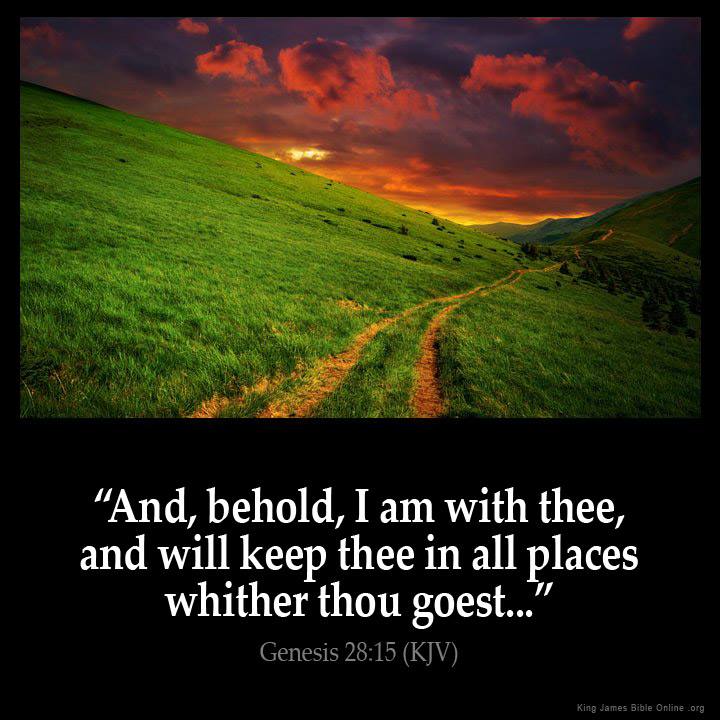 “And, behold, I am with thee, and will keep thee in all places whither thou goest, and will bring thee again into this land; for I will not leave thee, until I have done that which I have spoken to thee of.” Genesis 28:15 (KJV)