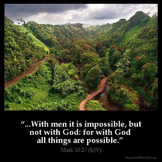 And Jesus looking upon them saith, With men it is impossible, but not with God: for with God all things are possible.